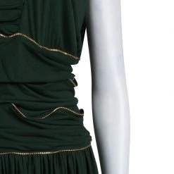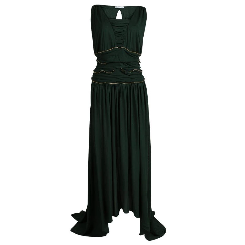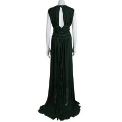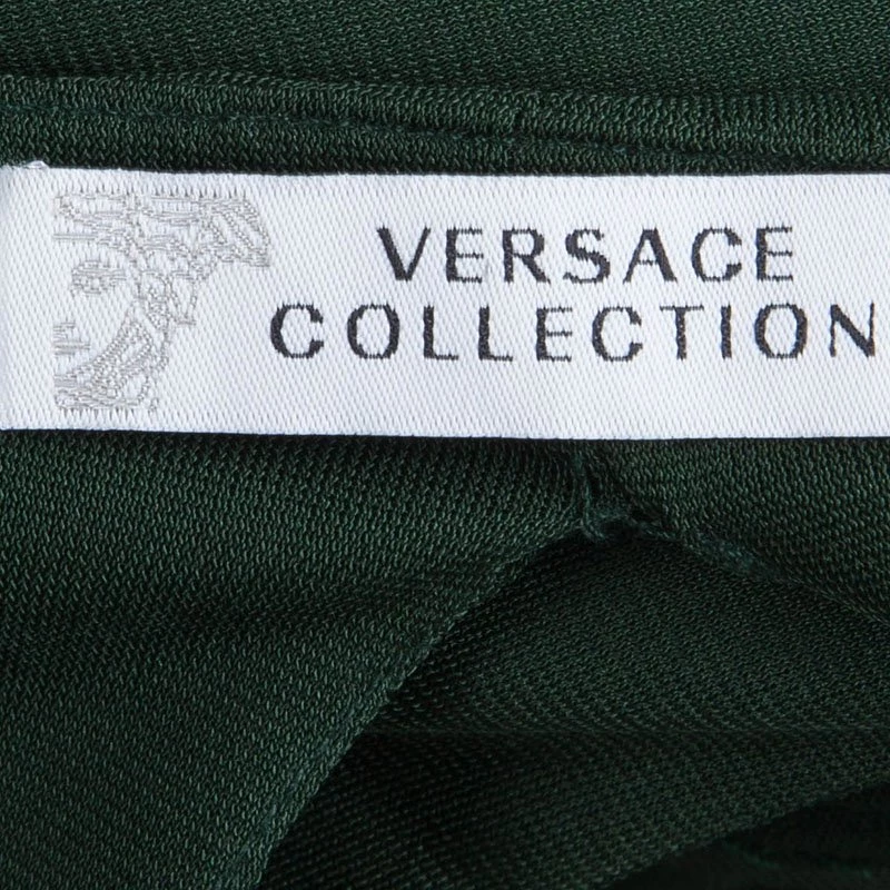 Show-stopping silhouettes are Versace Collection’s signature. It’s crafted from acetate polyamide-blend and fashioned with a flattering ruched detailing and falls into a floor-pooling hem that ensures graceful movement with every step. The gold-tone zipper detailing at the cinched waist adds a contemporary edge.