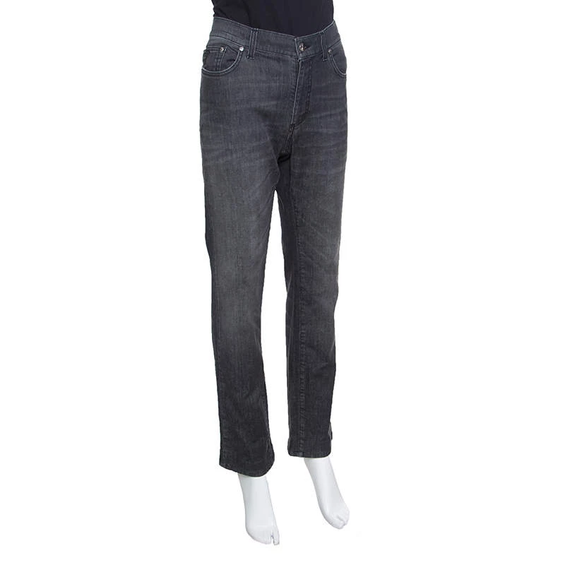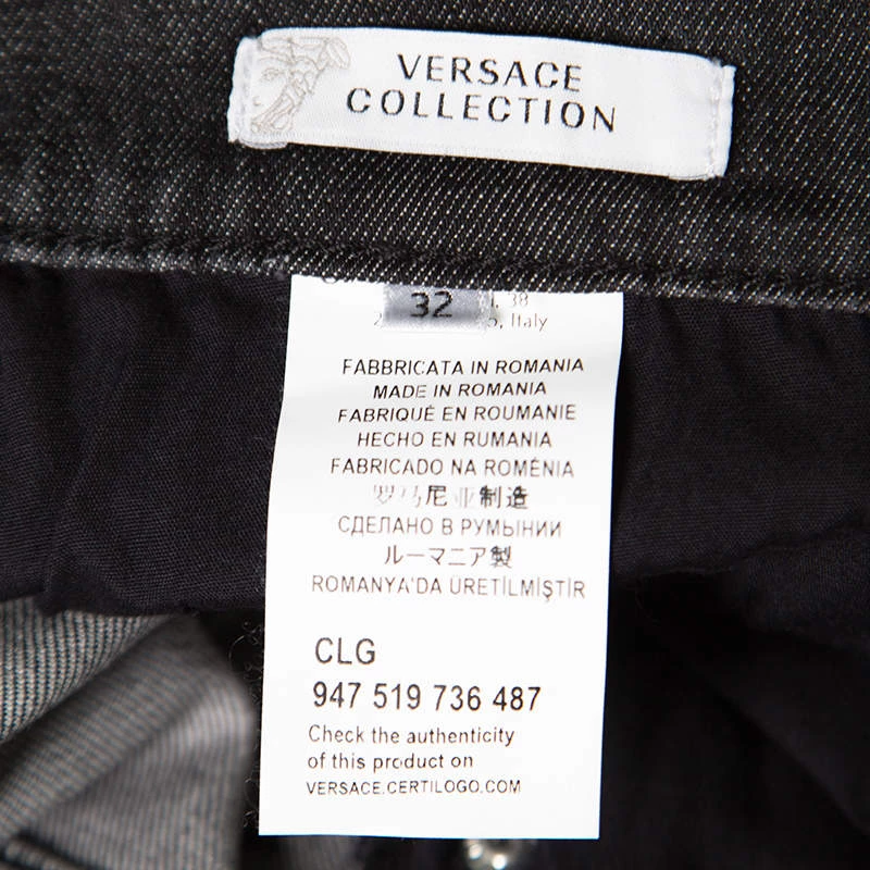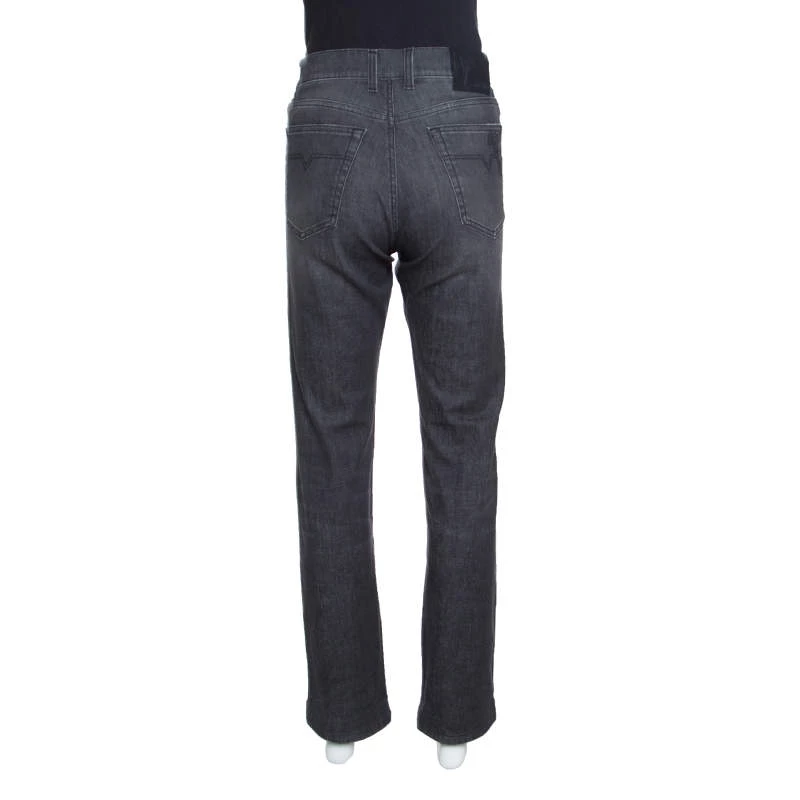 Now style those fabulous tops of yours with these amazing grey jeans from Versace Collection. They are made of a cotton blend and feature a faded effect design. They flaunt a front button fastening, belt loop closures and front and back pockets. Wear stylish loafers or ankle boots with them for a fashionable outing.