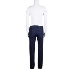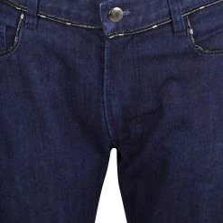 You can now dress in the most casual manner by coupling this Versace denim with any sexy tunic. It is structured to offer skinny pattern with a dark wash and broad waistline making it comfortable to wear. The waistband is finely stitched with simple metal button, a zip fly and dual pockets at the backside. Tuck a tailored shirt into these straight fit jeans and pair with metallic heels for a contemporary take on work wear.