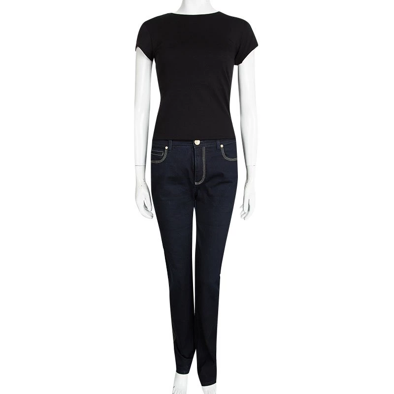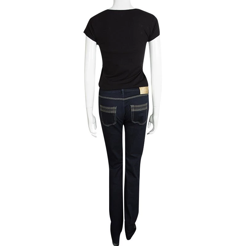 Get this essential wardrobe staple straight fit jeans from Versace and experience its perfect fit. These jeans are a wonderful indigo colored pair and are made from a cotton blend. Made in Italy, this denim is a class apart and features both front and back pockets. An ideal pair for outings with friends, these can be worn with any top and stylish loafers.