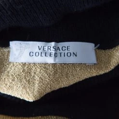 Gorgeous in appeal and design, this sweater from Versace Collection is set to win hearts! It comes beautifully made from a cashmere blend and designed with short sleeves, high neckline, and patterns in different colours.