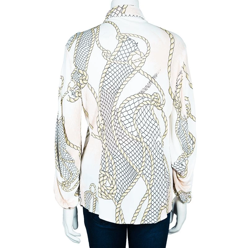 Versace maintains its design element with this multicolor top. Cut from viscose, it has a collared neck with button down closures in the front and long sleeves with elasticized ends.
