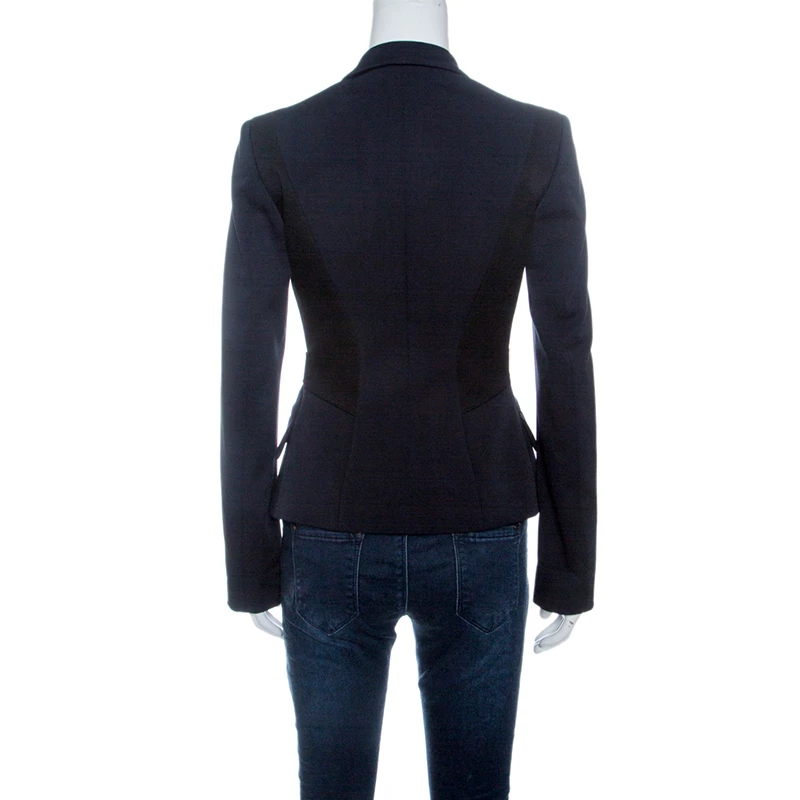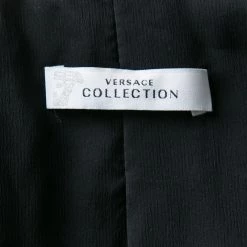 A piece of clothing that can effortlessly enhance your formal outfits, this blazer by Versace Collection is styled in black colour into a slim-fitting structure. Designed with ribbed panels on the front and a belt accented with a chunky buckle, the blazer is equipped with two flap pockets, long sleeves, and notched lapels. Style this with your statement separates.