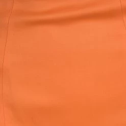 Walk with panache with this gorgeous pencil skirt from Versace Collection The vibrant orange skirt is made of a wool blend and features a simple structured silhouette. This high waist creation comes with a concealed zip closure at the back, a bottom slit and is sophisticated, chic and very modern. Pair it with a simple top and block heels to stand out in the crowd.