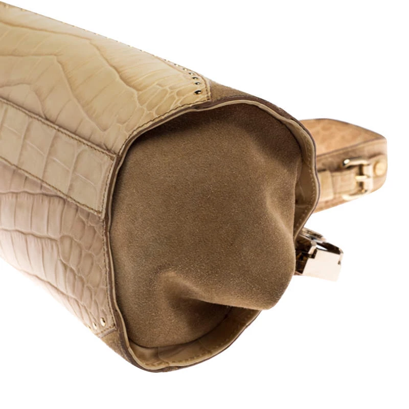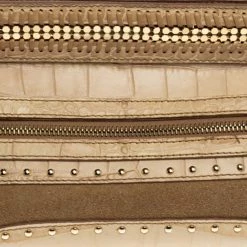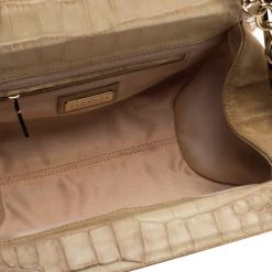 Fall in love almost instantly with this stunning shoulder bag by Versace. Lined with satin, this bag is just about perfect for your essentials. Crafted using crocodile-embossed leather, this bag is a stylish creation ready to be your companion. Swing style in your arms with this cream creation.