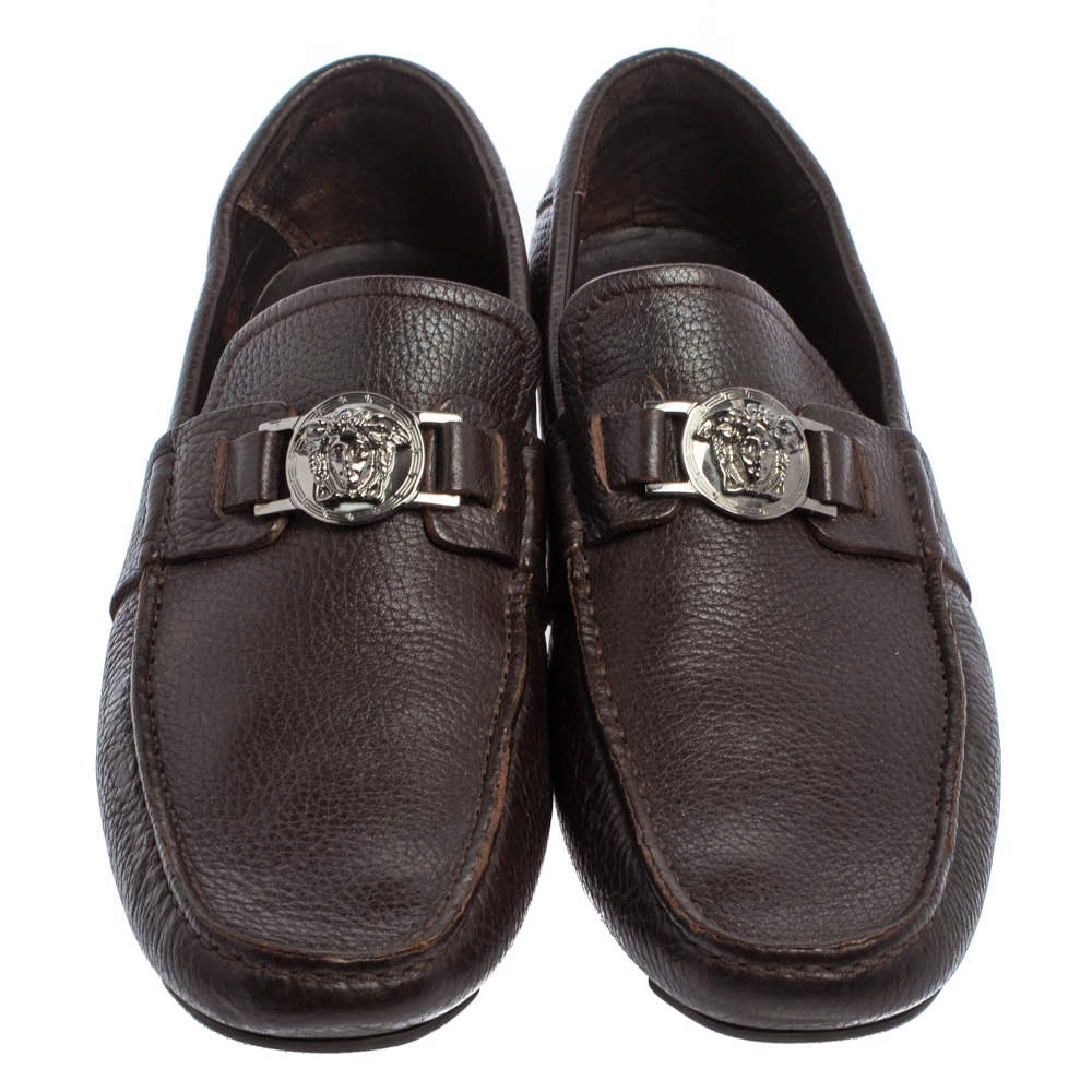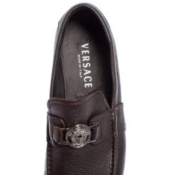 Precise stitching, use of quality materials, and a sleek shape led to the final result of this pair of loafers. They are by Versace, and this is evidently displayed with the Medusa detail on the uppers. The dark brown loafers are brimming with comfort and style.