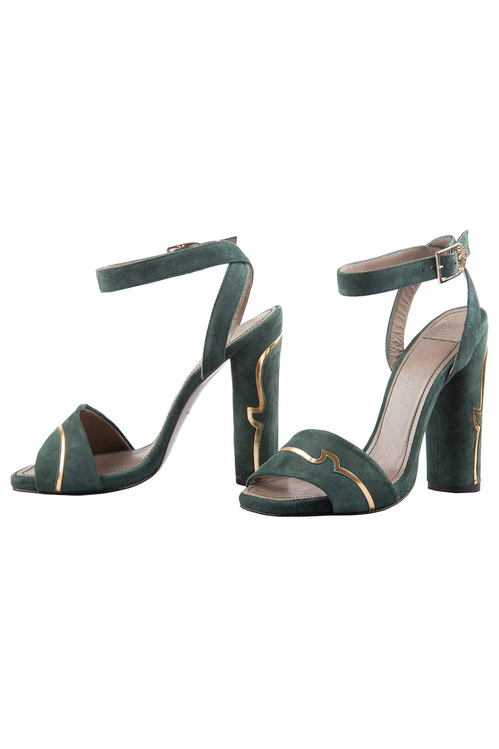 Versace Dark Green And Gold Suede Ankle Strap Sandals Size 37 For Women - Image 2