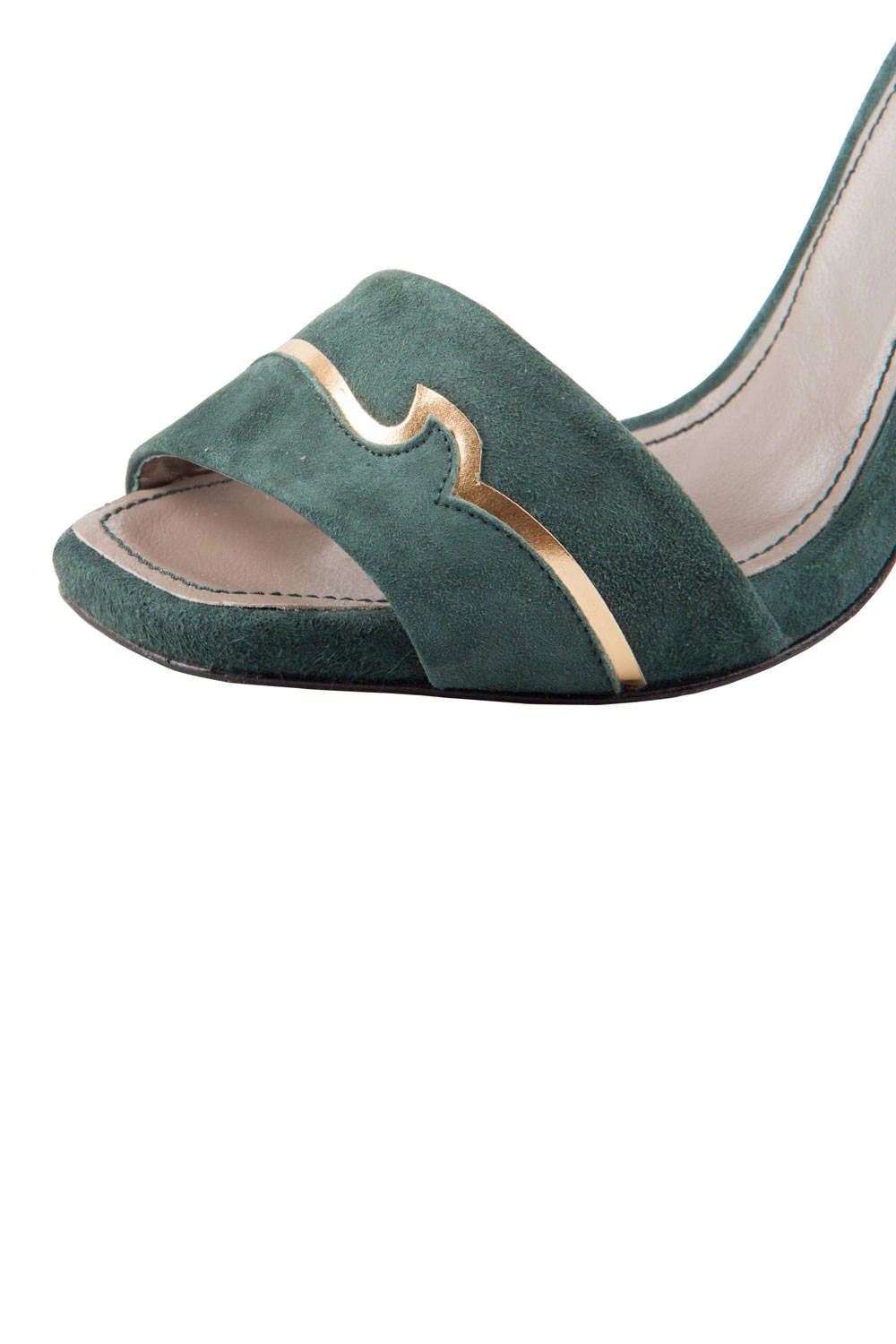 Versace Dark Green And Gold Suede Ankle Strap Sandals Size 37 For Women - Image 4