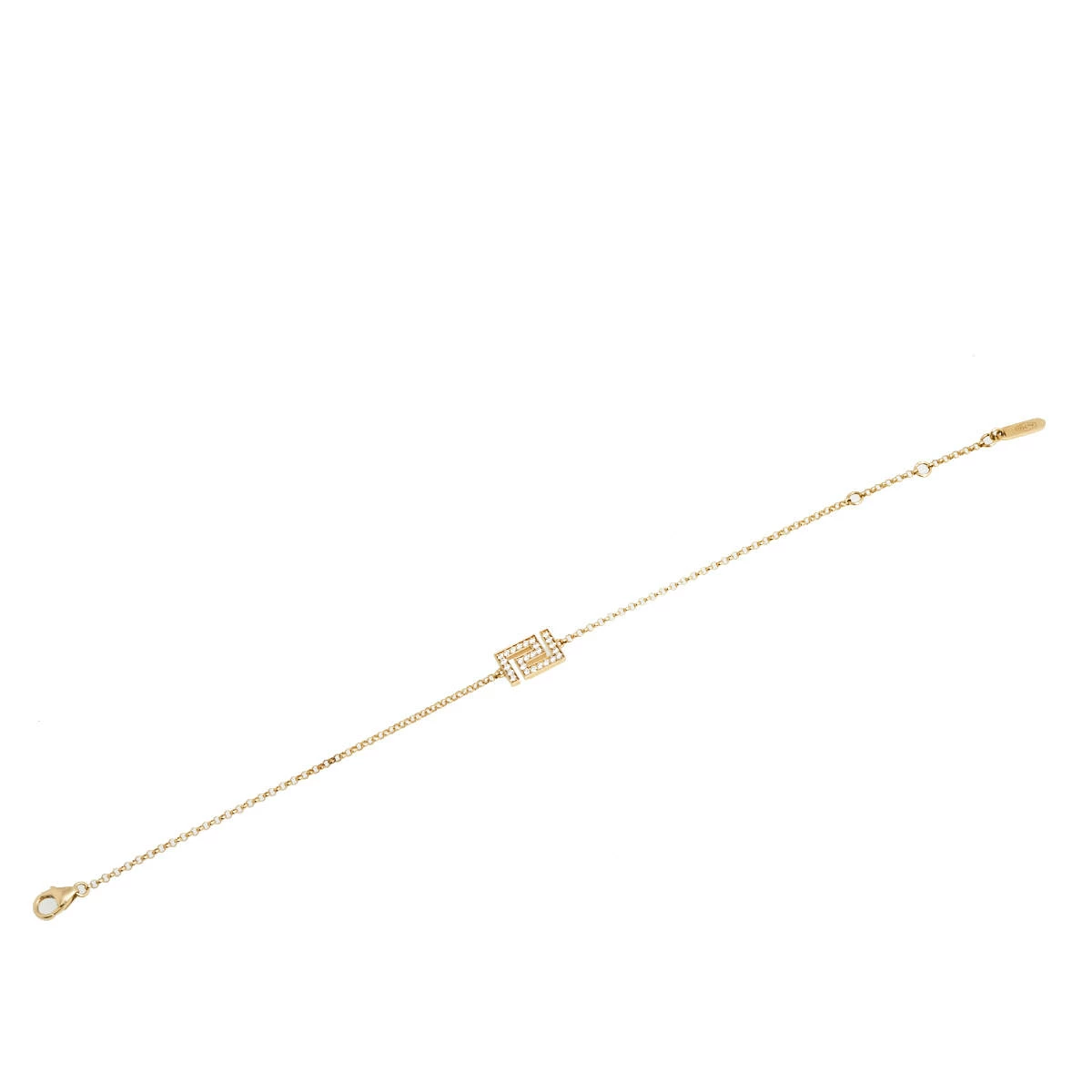 Artfully made from 18k yellow gold, this flawless bracelet by Versace can be your next prized possession. Featuring a gorgeous signature Greek key charm studded with diamonds, the design has been finished with a lobster clasp on the chain. The piece is simple and grand.