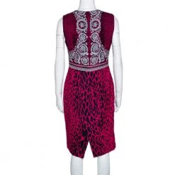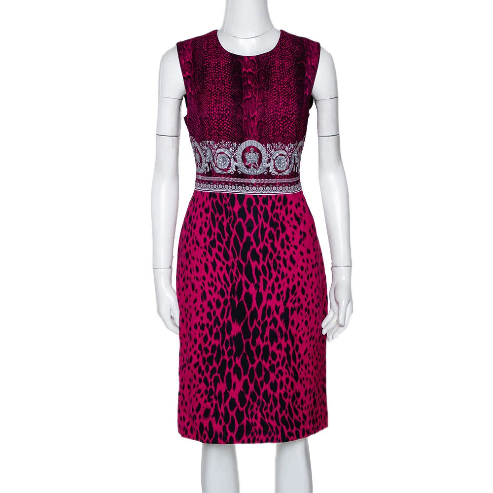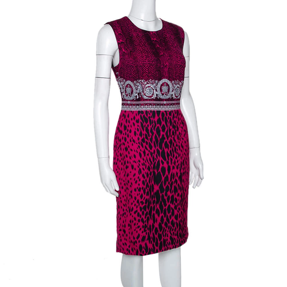 Stay in style with this trendy Versace dress that lends confidence and poise. It is crafted from a blend of quality fabrics and features a mix of animal and Baroque print that adds interest. It is tailored to offer a good fit and the silhouette makes it very stylish. Designed for a contemporary look, this pink attire is perfect for any event.