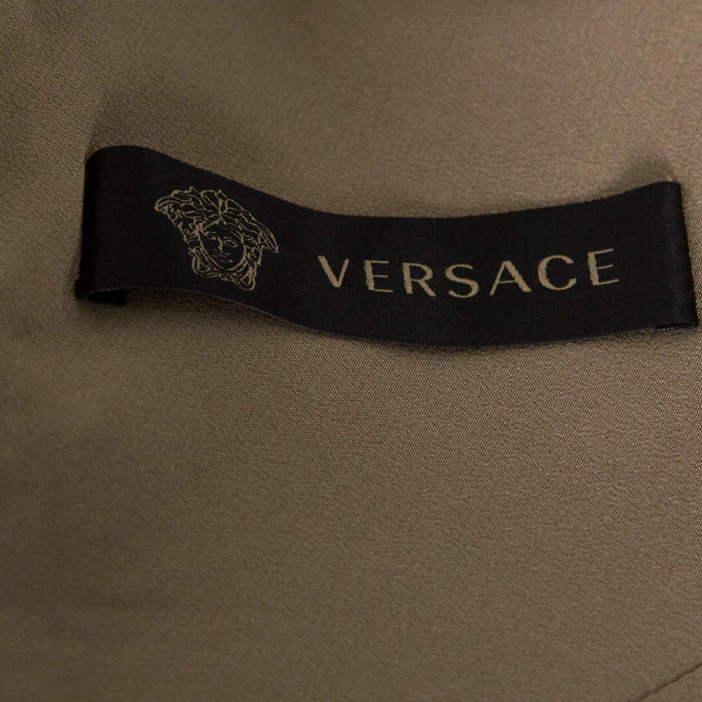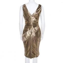 Be at your glamorous best in this sleeveless dress from the house of Versace! The gold creation is made of 100% silk and has been styled with a foil print. Exhibiting a flattering silhouette, it comes with a deep V-neckline and a concealed zip closure at the back. It will look amazing with pointed pumps and an embellished clutch.