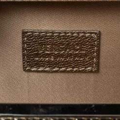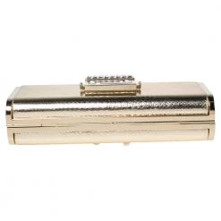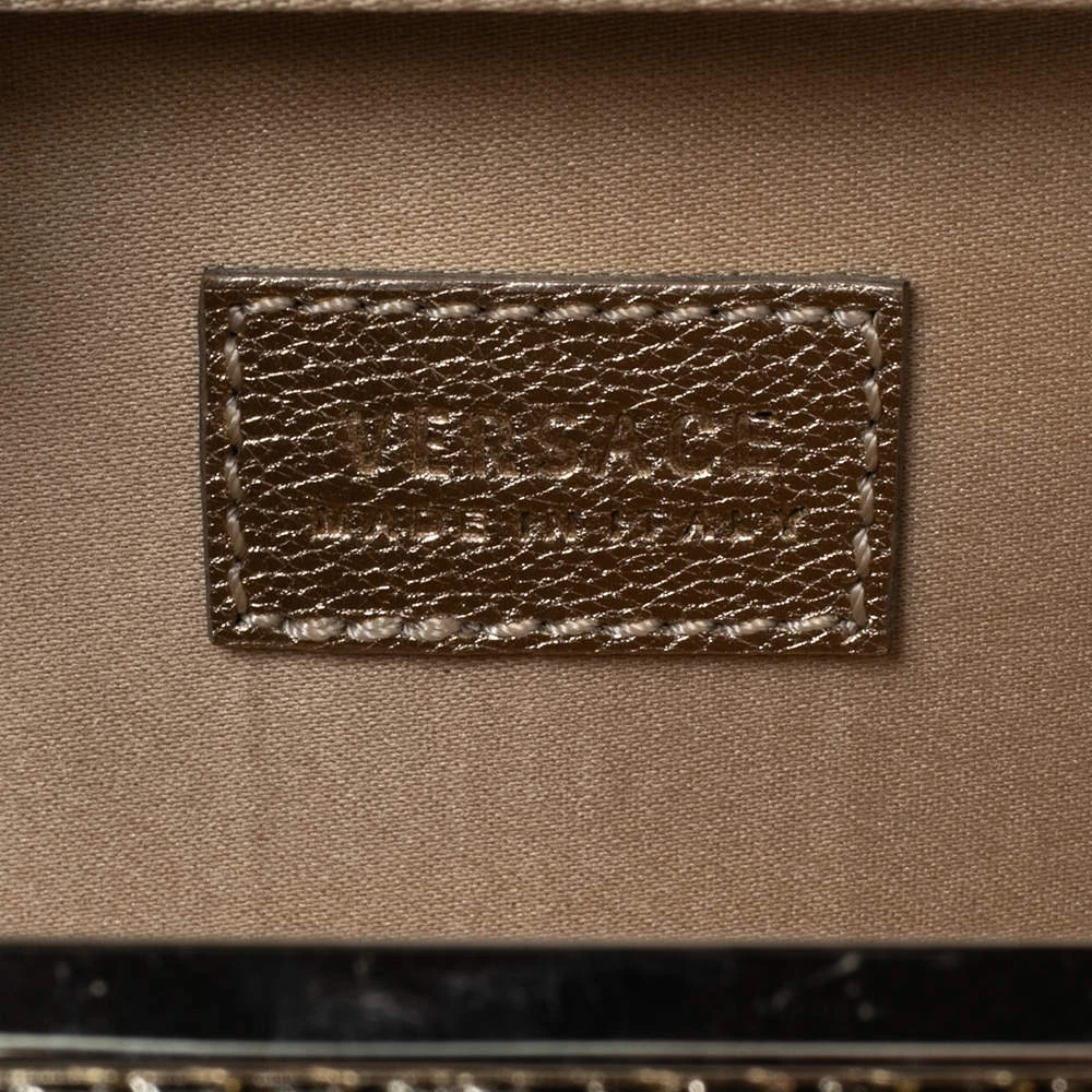 Pick this covetable Versace clutch and make a valuable addition to your closet. The label’s logo in gold-tone hardware sitting on the gold exterior is the petite bag’s winning feature. Made from karung leather, it is equipped with a flap and a satin-lined interior.