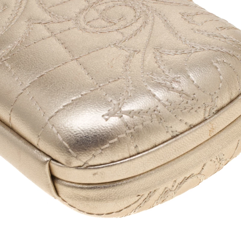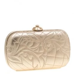 From the house of Versace comes this gorgeous clutch that will perfectly complement all your evening outfits. It has been crafted from gold leather and styled with quilting and a Medusa emblem that opens to a satin interior. This clutch wins with its structured silhouette and polished finish.