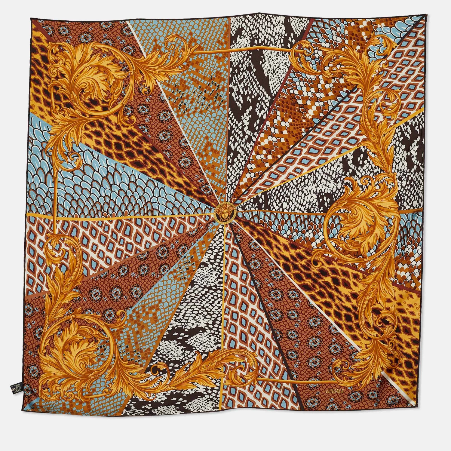 This lovely scarf is a chic way to accessorize your casual outfits and statement totes. This scarf from Versace features an interesting design that features multiple motifs coming together. It is cut from smooth silk fabric and will elevate all your looks.