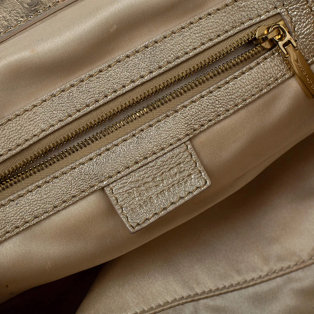 - Exterior Material: Gold Patent and Ostrich Embossed Leather