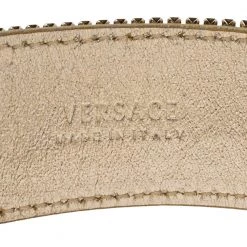 Versace brings forth this exquisite bracelet to pair with your evening ensembles for a luxuriously graceful look. Elegantly crafted into a mesh design, this link bracelet exudes an aura of sophistication with its glowing gold-tone construction. Add this bracelet to your collection and set a classy fashion statement wherever you go.