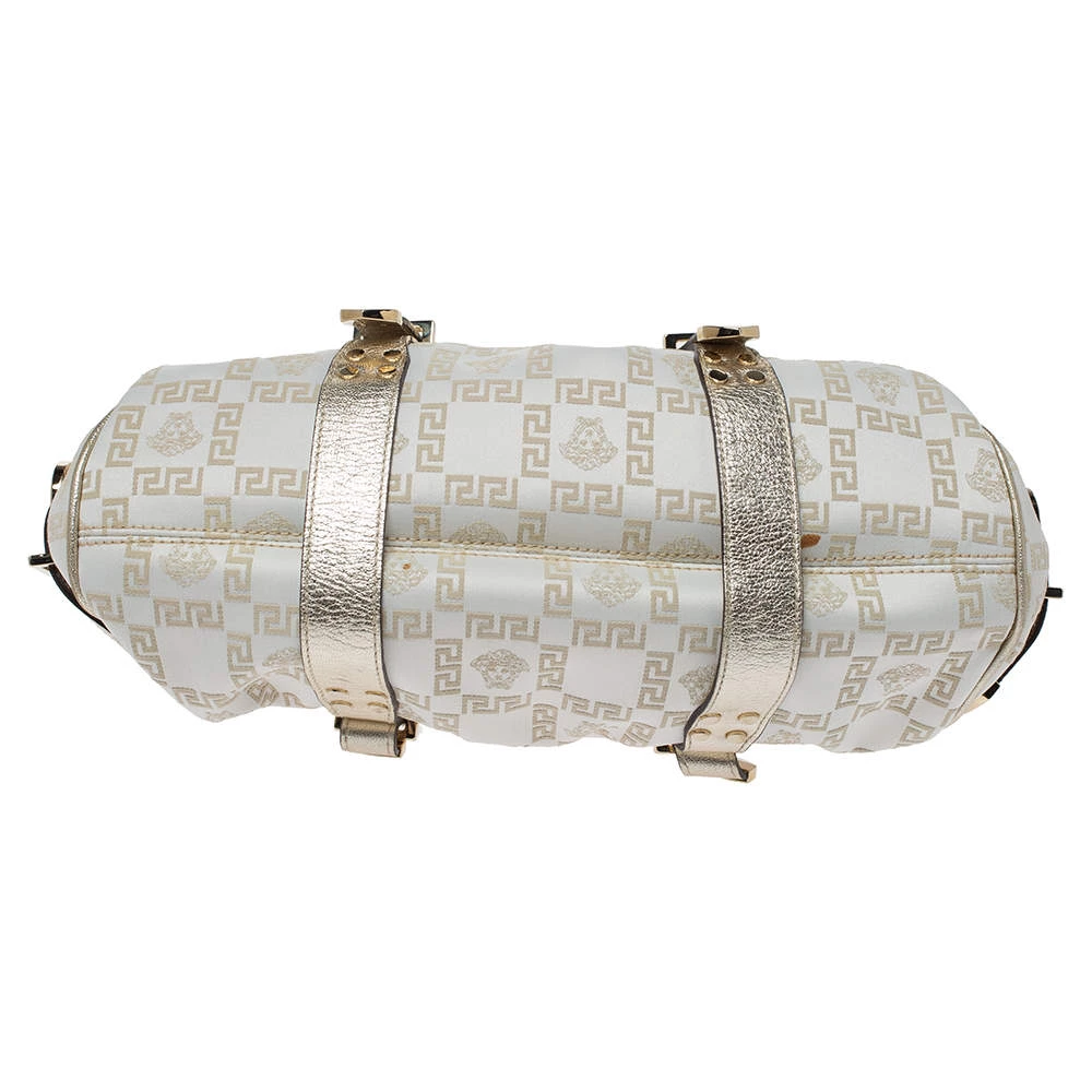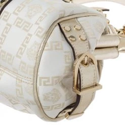 A gorgeous bag by Versace that is characterised by great craftsmanship and alluring prints all over. The satchel, made from signature fabric and leather, features two handles, the brand logo on the front and a spacious interior to house your necessities.
