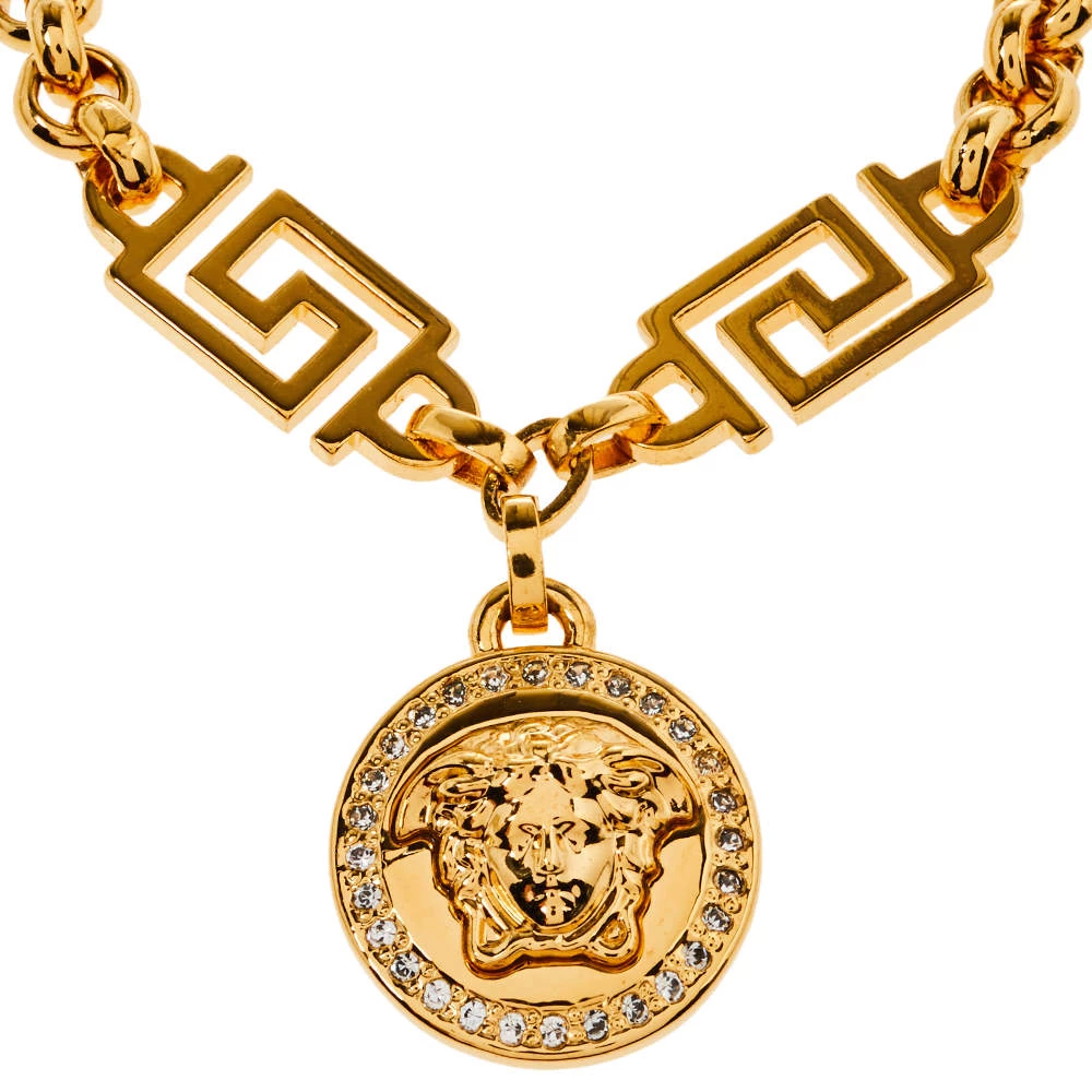 Accessorize your bold looks with this engaging and striking bracelet from Versace. The smart piece is crafted from gold-tone metal and features the brand’s signature Medusa medallion charm as well as the signature logo as links. It comes with a chunky interlocking chain and a lobster clasp. Wear this exquisite creation with your evening ensemble.
