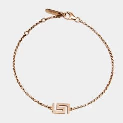 Artfully made from 18k yellow gold, this flawless bracelet by Versace can be your next prized possession. Featuring a gorgeous signature Greek key charm, the design is finished with a lobster clasp on the chain. The piece is simple and elegant.
