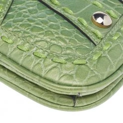 Beautifully crafted, this clutch bag by Versace is a must-have for your party and evening style edit. Crafted from croc-embossed leather, it is detailed with the brand logo on the front flap. It opens to a lined interior and is finished with a chain.