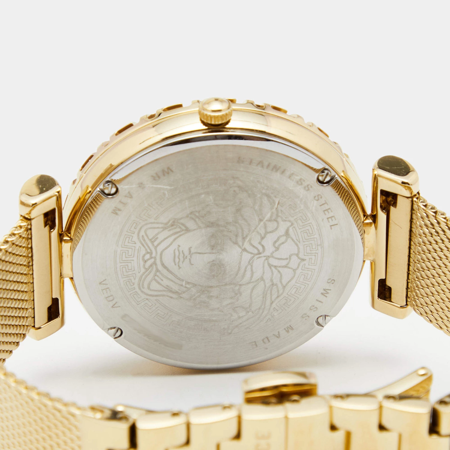 A beautiful watch from Versace that merges fine aesthetics with functionality. The perfectly-finished timepiece is made of gold-plated stainless steel and it has a stunning green dial highlighted by the Medusa logo. Let this creation keep you on time and also elevate your style.