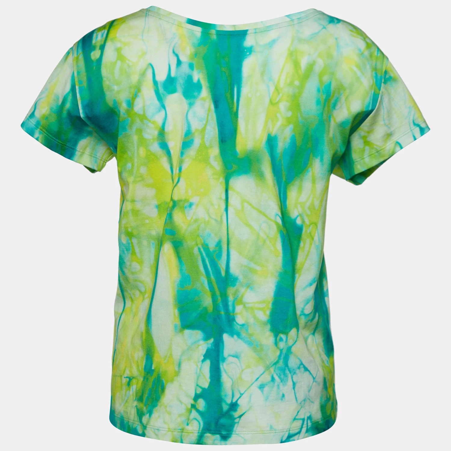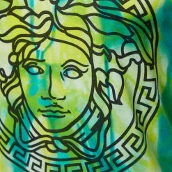 This T-shirt from the House of Versace is here to make you look fashionable. It is tailored using green cotton fabric, which is enhanced with tie-dye detailing. It showcases a Medusa print on the front, a crew neck, and short sleeves. Wear this Versace T-shirt with pants or denim for casual outings.