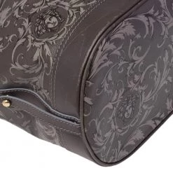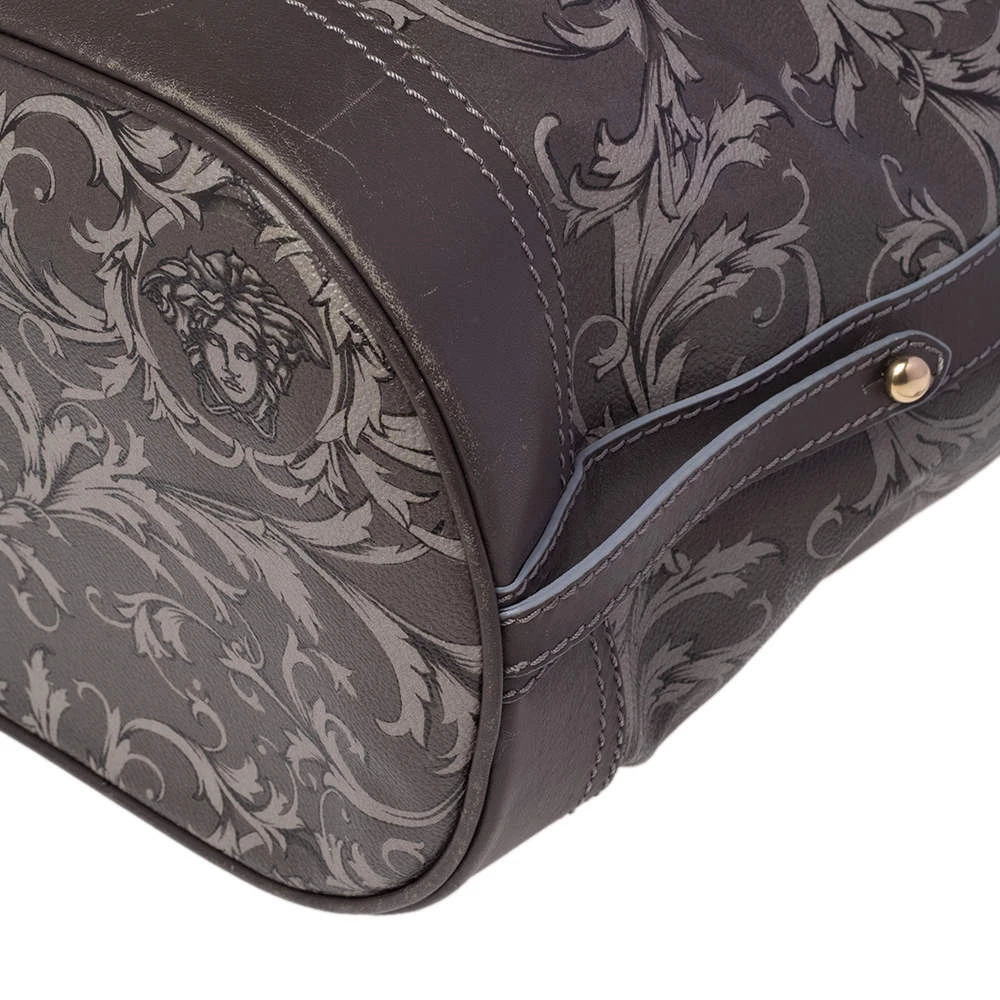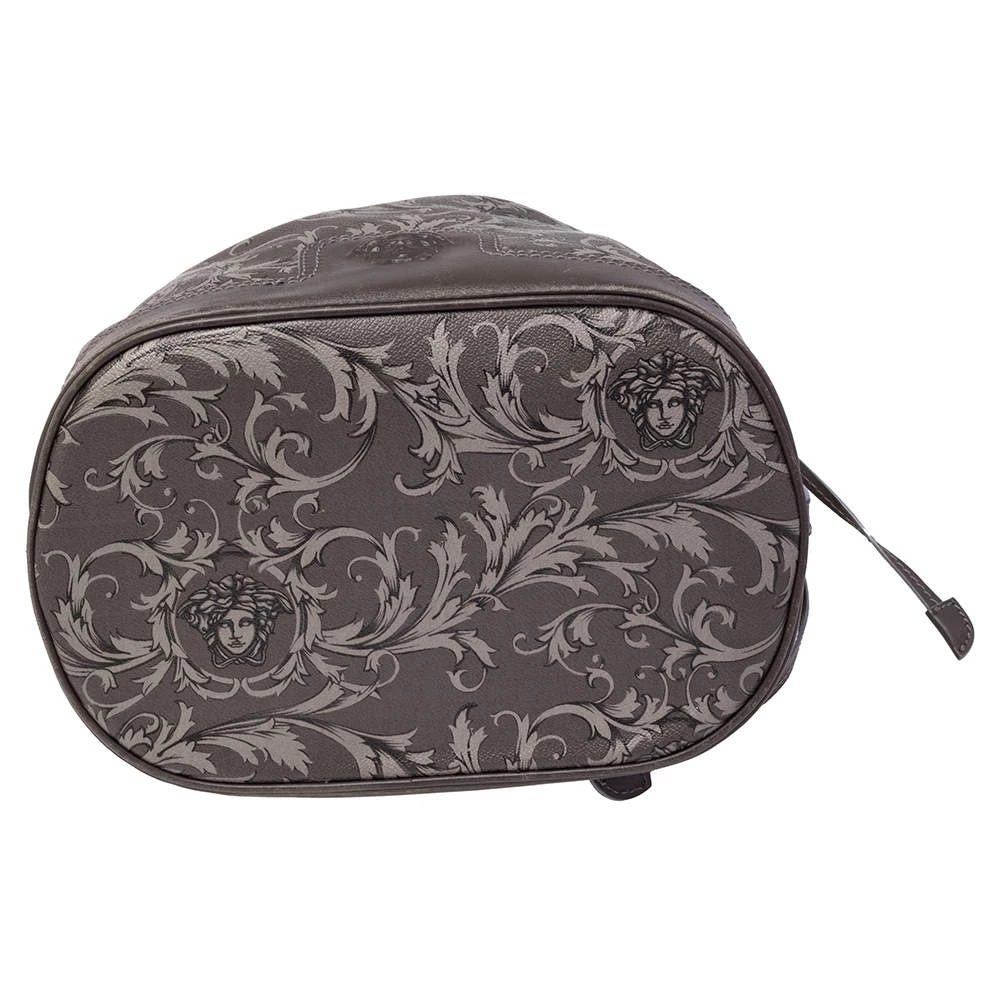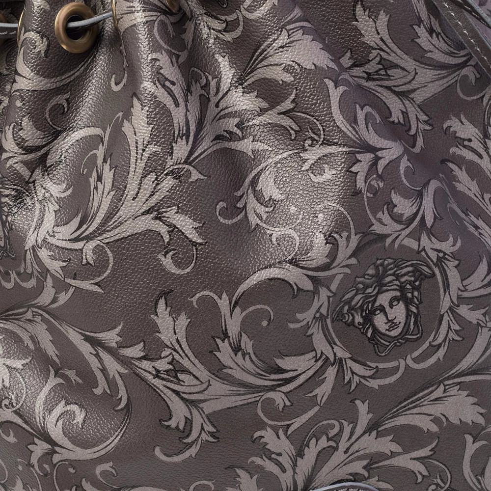 Versace Grey Barocco Heritage Coated Canvas And Leather Drawstring Bucket Bag For Women - Image 8