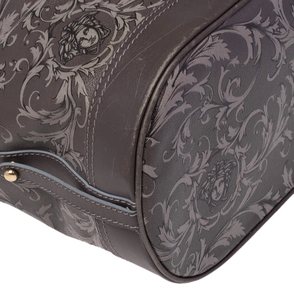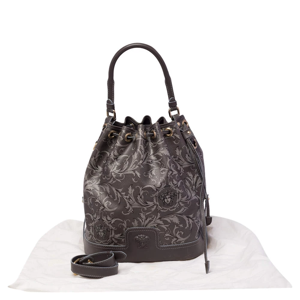 Versace Grey Barocco Heritage Coated Canvas And Leather Drawstring Bucket Bag For Women - Image 12