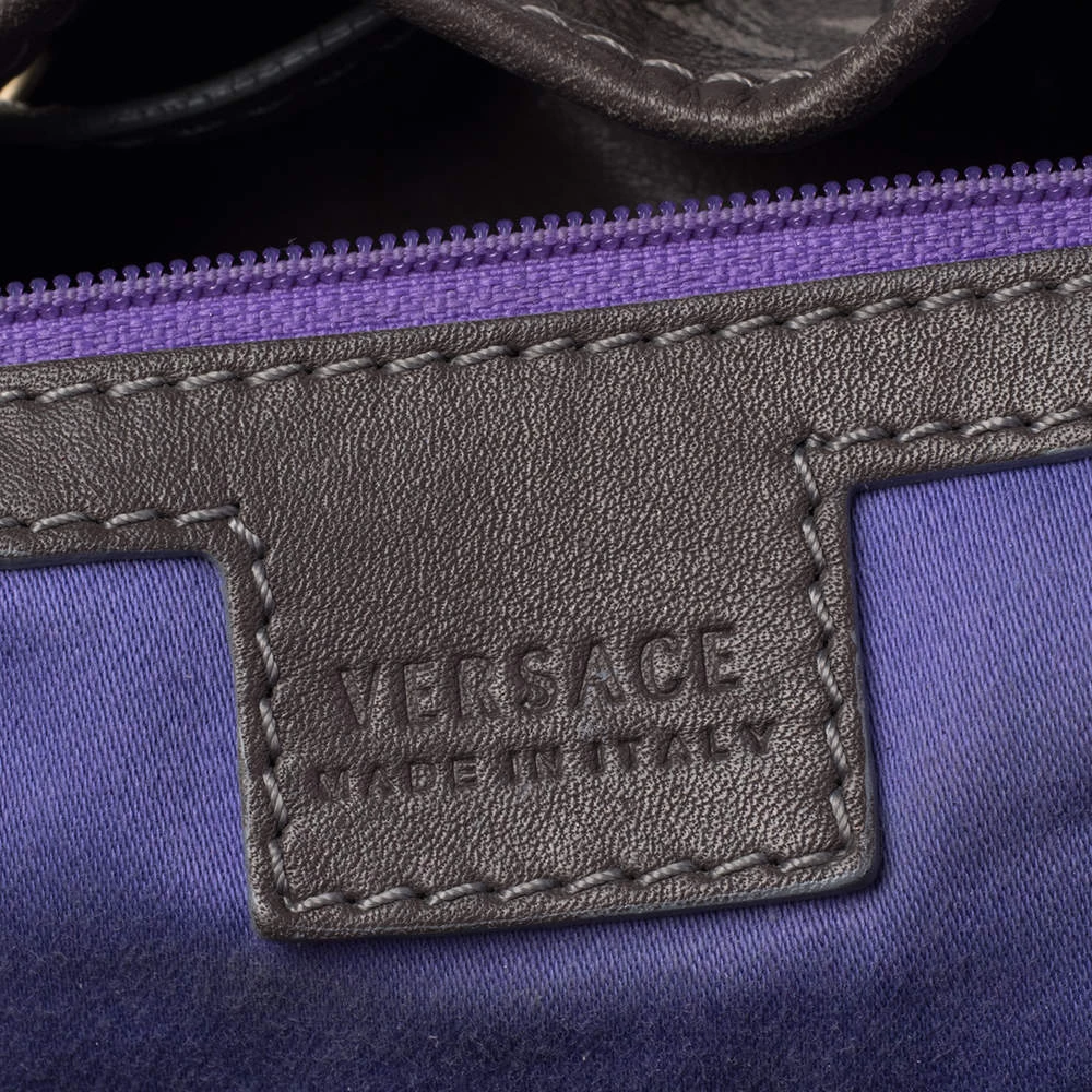 Versace Grey Barocco Heritage Coated Canvas And Leather Drawstring Bucket Bag For Women - Image 10