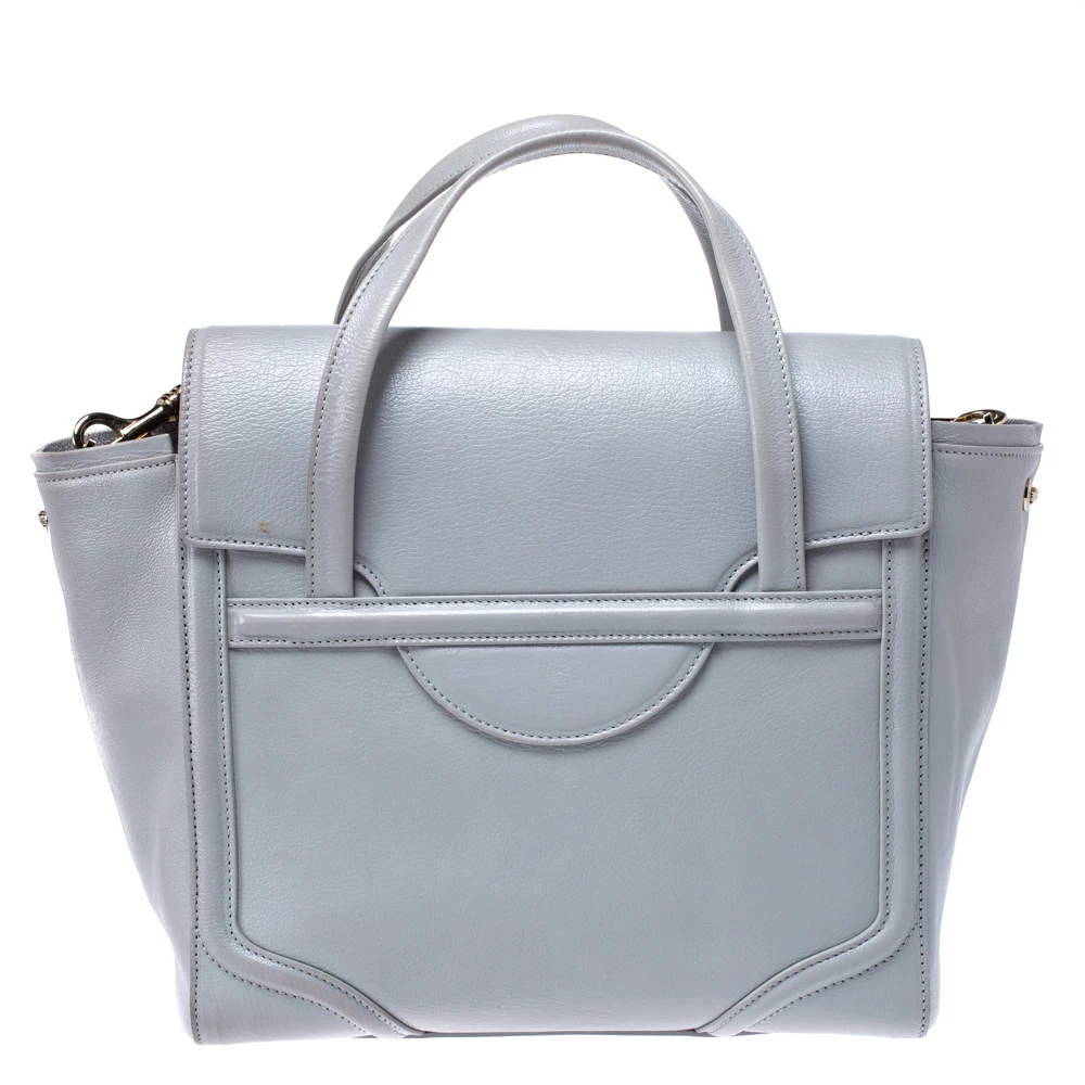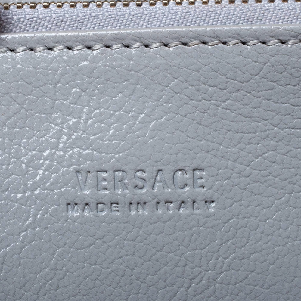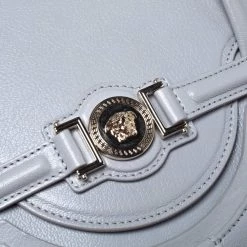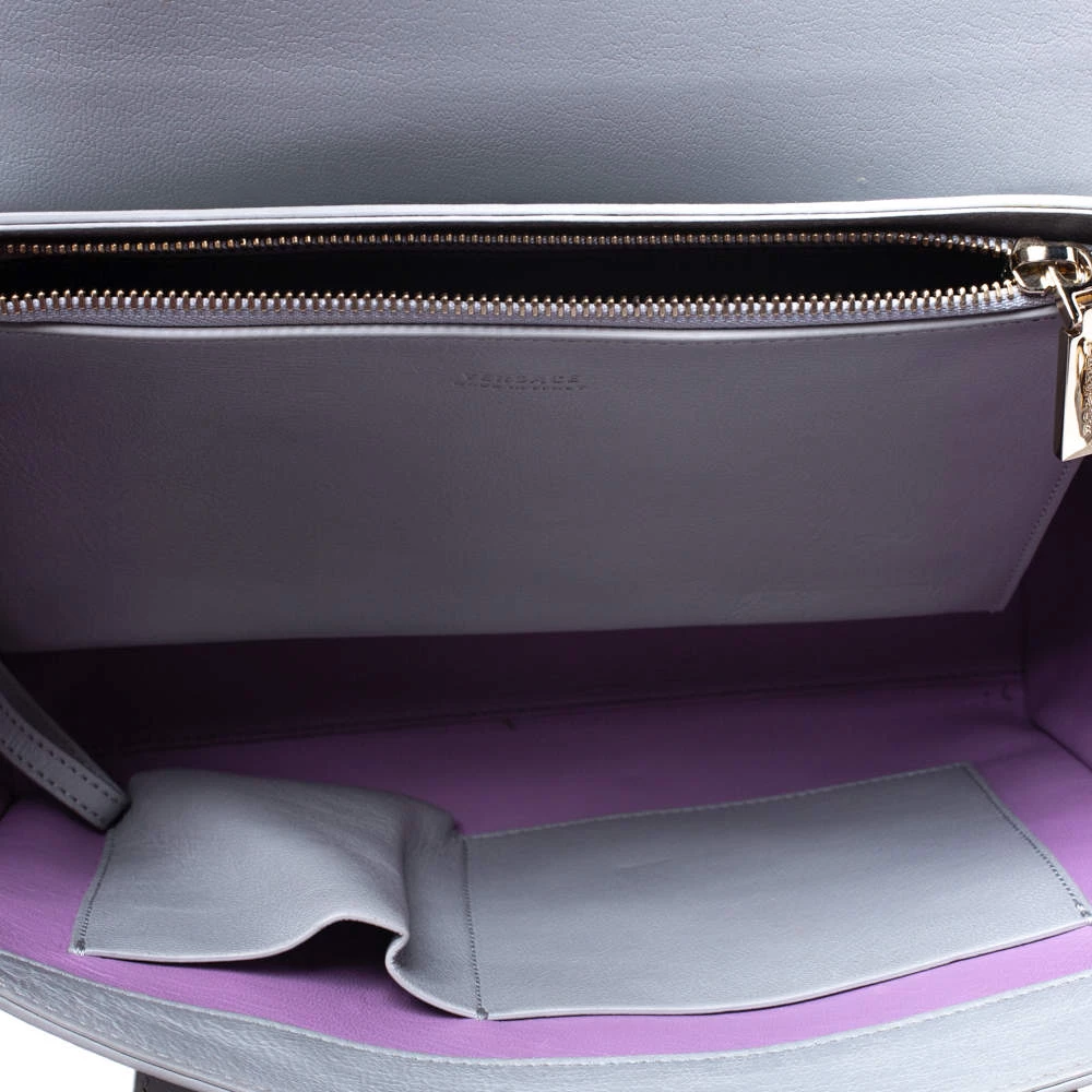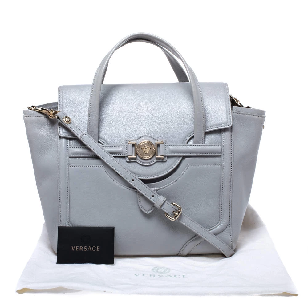 This tote bag by Versace has a rich and classy look that can be easily paired with any of your favourite outfits. Crafted in Italy, it is made of leather and comes in a stunning shade of grey. It comes with a front flap with a gold-tone closure carrying the Medusa logo, it opens to a leather interior and is held by dual handles and a shoulder strap.