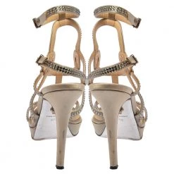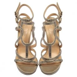 When considering Versace, three words come to mind: luxurious, timeless, and iconic. These gorgeous sandals are crafted from satin and the sleek caged silhouette is adorned with carefully placed crystal embellishments. They are complete with open toes, 12.5 cm heels for the comfort of your feet.