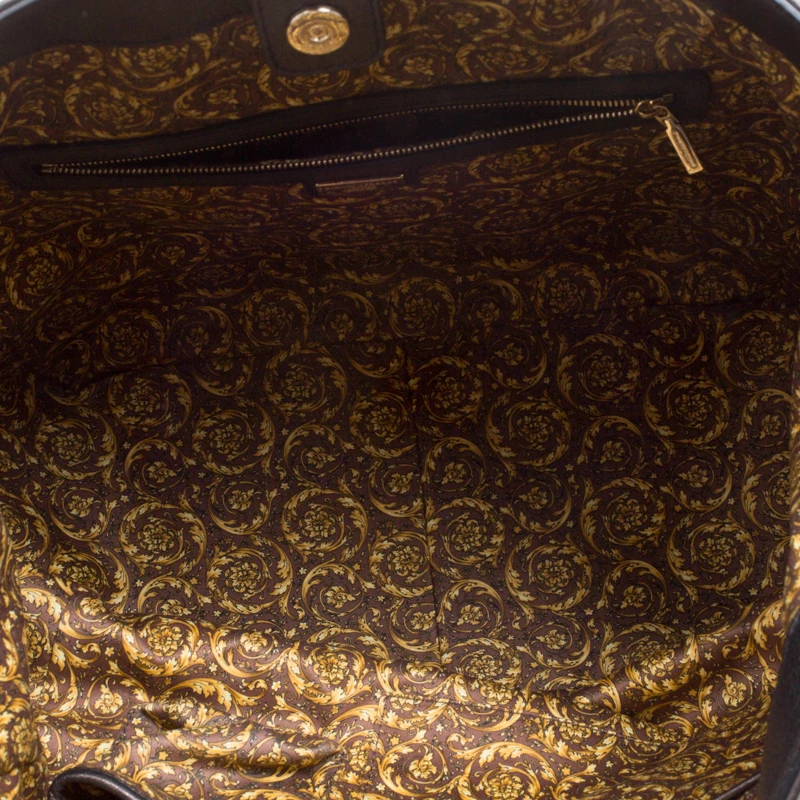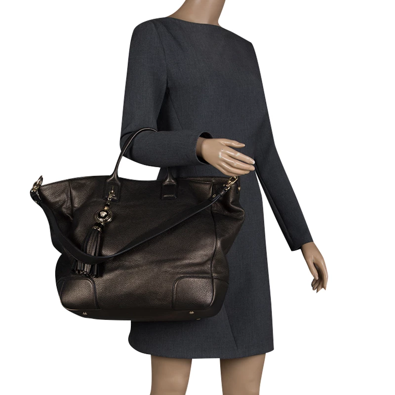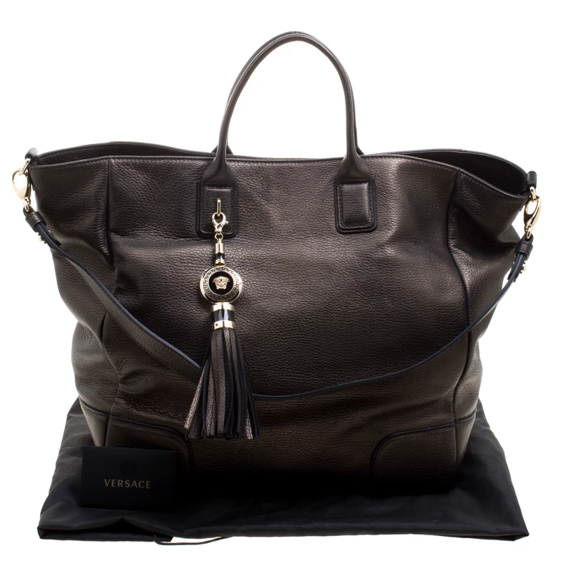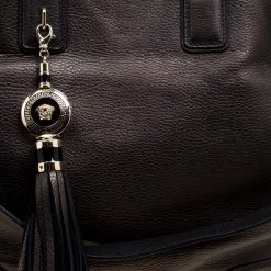 Swing with pride this gorgeous tote that comes crafted from leather and to endure through all your busy days. The bag is from Versace and it has a spacious satin interior, two top handles, and a detachable shoulder strap and charm.