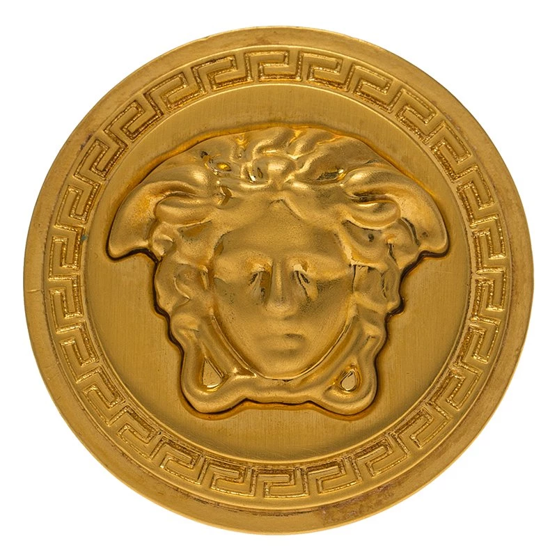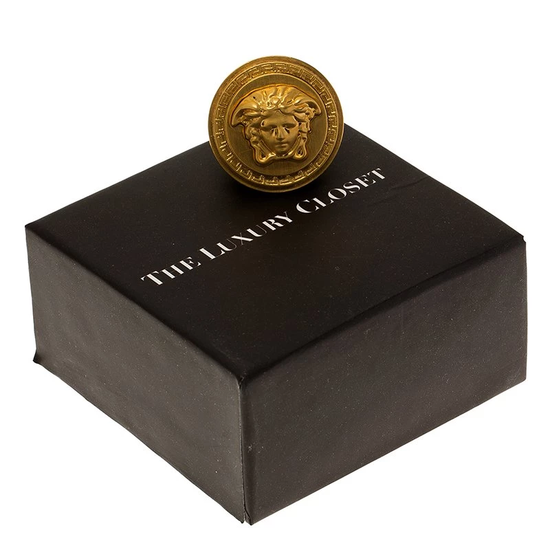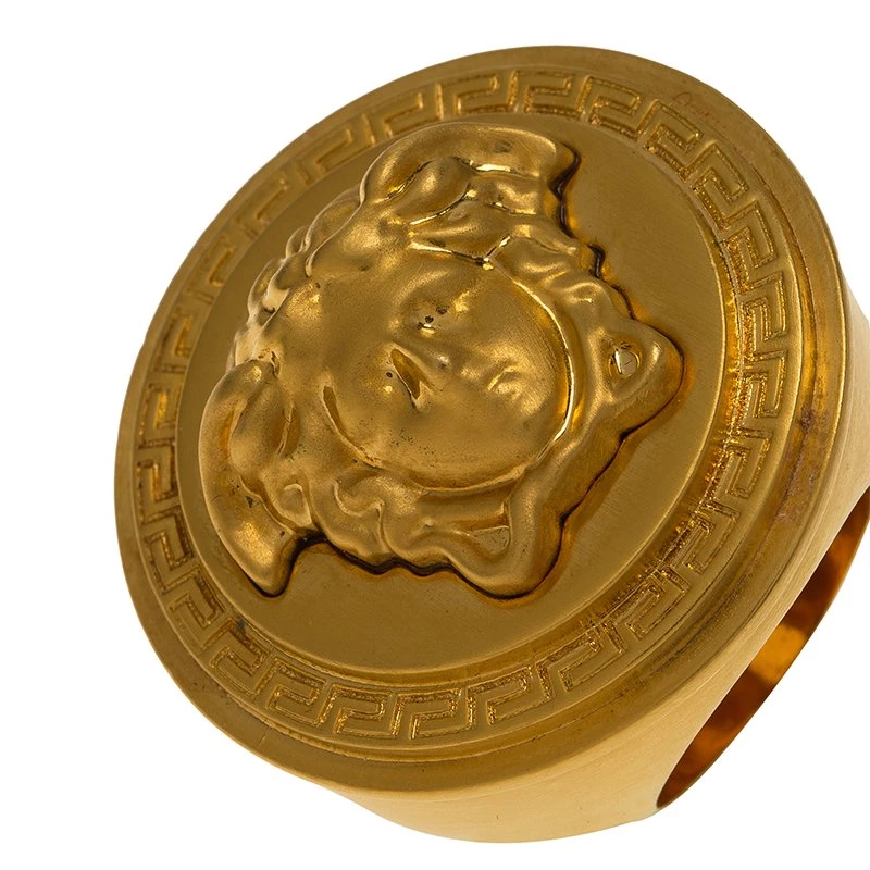 Featuring the brandโs signature emblem, the Versace Icon Medusa ring has been hand-picked from the archives of the luxury accessory. Crafted in gold-tone metal, the round shape of Icon Medusa has been enhanced by embossing of the emblem on the coin top. An all occasion wear, the ring will perfectly enhance your luxurious contemporary take.