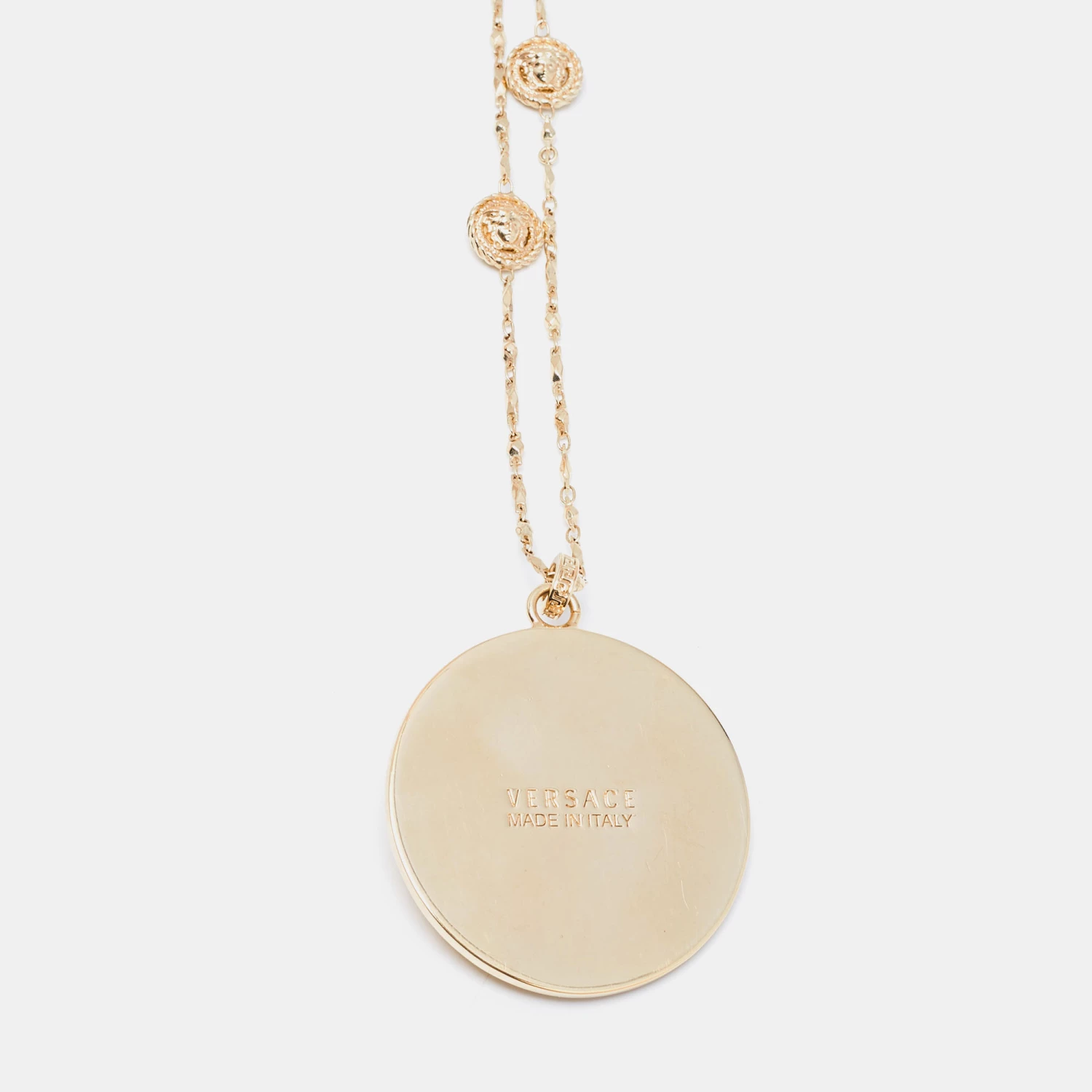 Versace’s necklace is a pretty way to highlight your neckline for an evening out. The Medusa-encrusted Lapis Lazuli pendant comes with a gold-tone chain that is accentuated with dainty Medusa icons. For fastening, it comes with a lobster clasp. Make this stunning accessory yours soon!