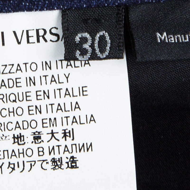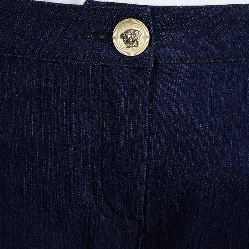 Versace’s is a symbol of Italian luxury worldwide. These edgy jeans from the house are ideal for those who like a touch of drama to their looks. It is made from indigo dark wash denim with contrast panel detail at the rear. It comes with the signature Medusa head button closure. Wear with basic tees!