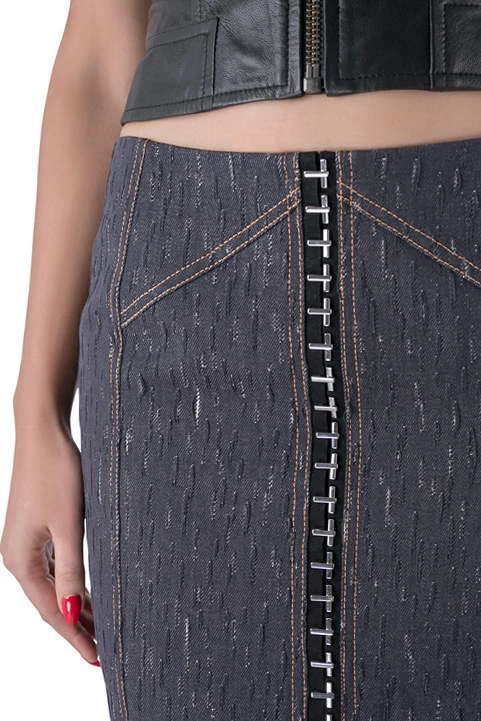 Featuring enticing hook detail at the front, this pencil skirt by Versace is splendour. Tailored from a blend of cotton, it comes with a comfortable fit to carry out your day. With a zip closure, this denim skirt is complete.