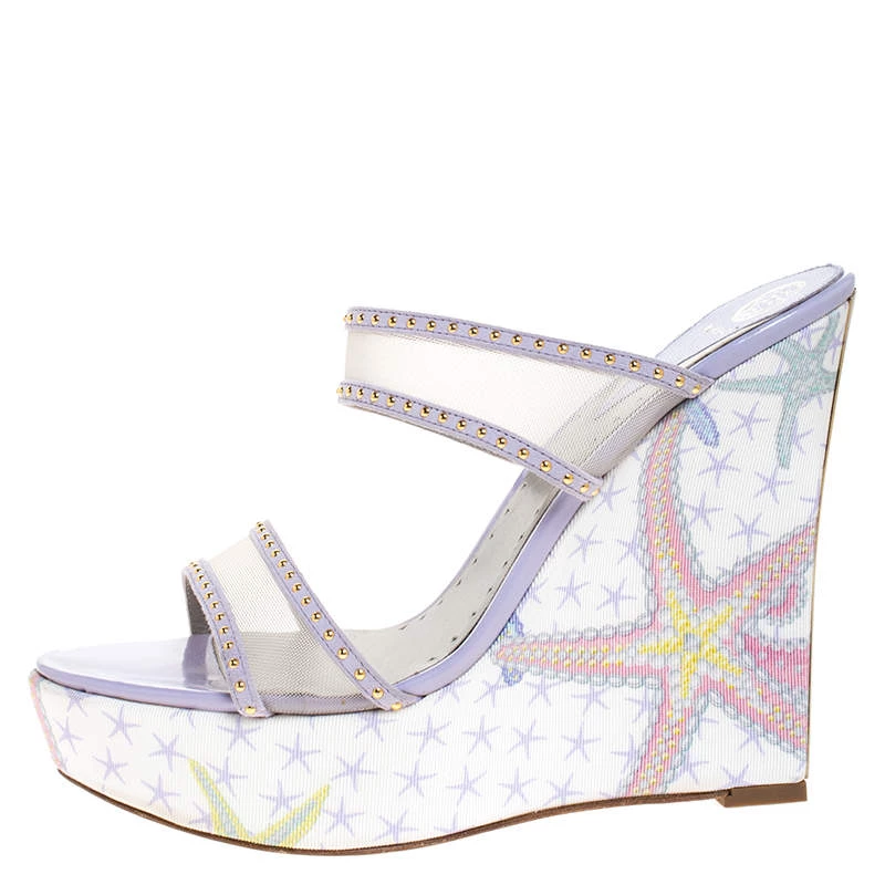 These sandals crafted from mesh and suede are worth the buy. Let these gorgeous wedge sandals speak for themselves in terms of style and comfort. Designed by Versace, they feature open toes, stud details and wedge heels.