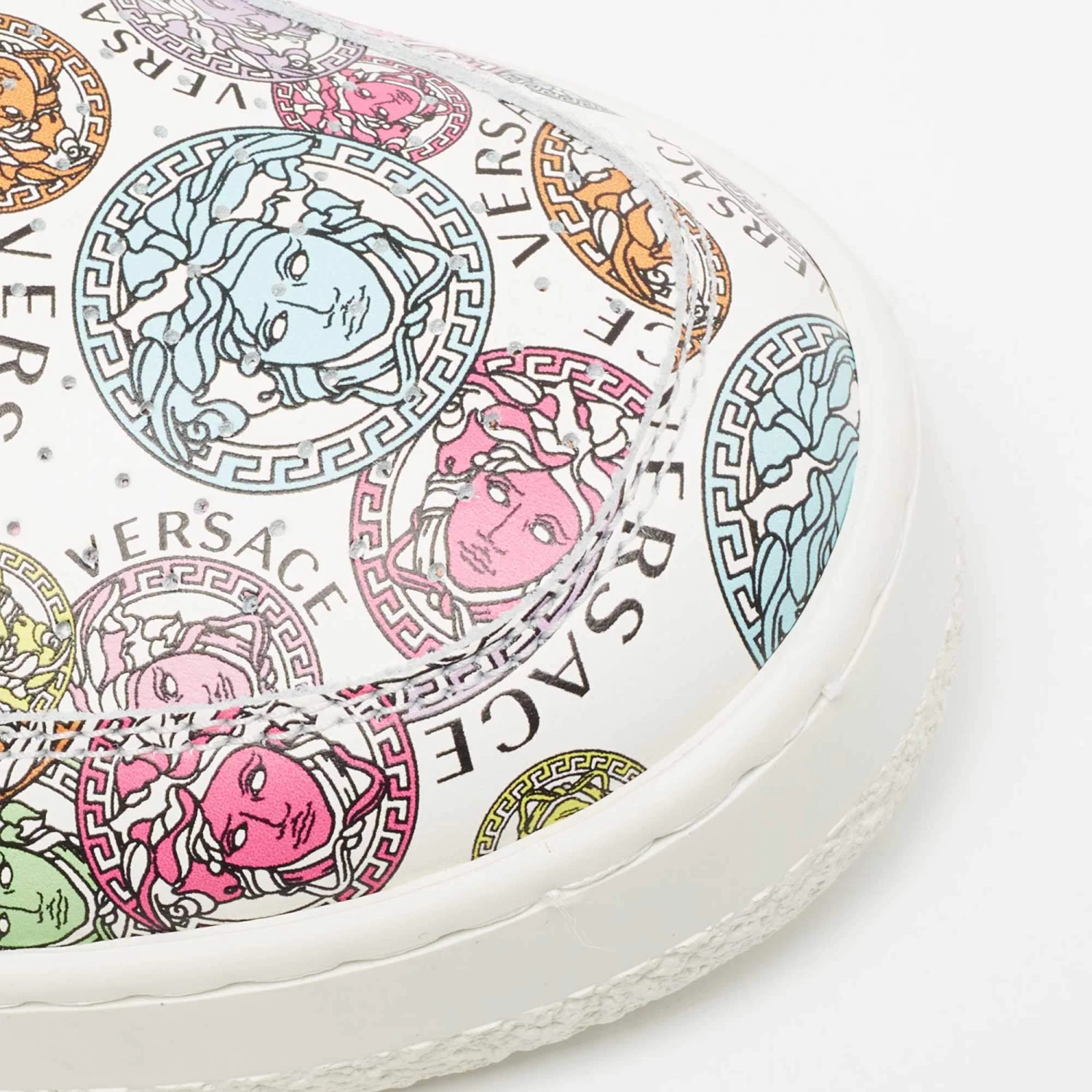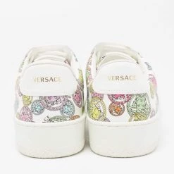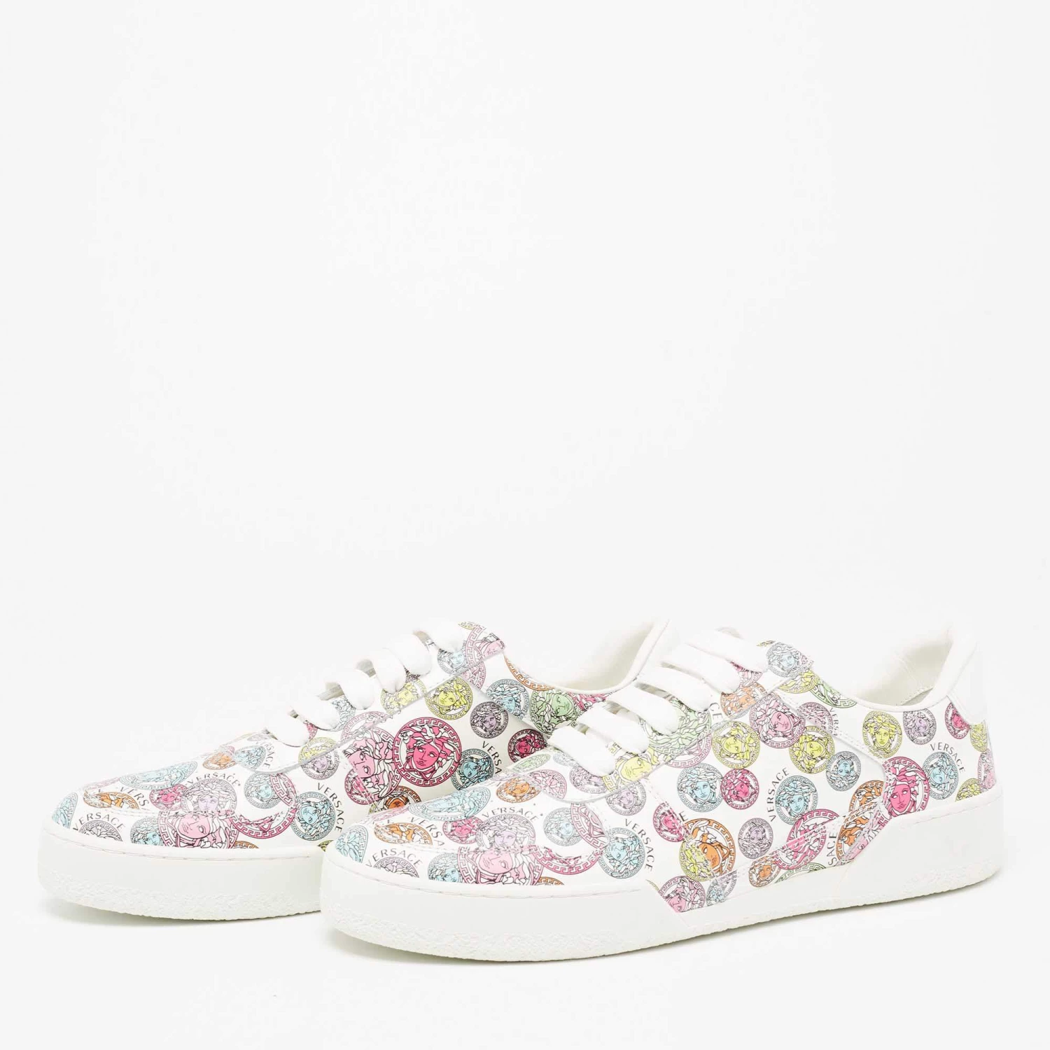 These Limited Edition sneakers from Versace are super sturdy and stylish. They are crafted from multicolored Ilus Medusa amplified print leather and showcase lace-up fastenings on their vamps. Flaunt your luxe styling sense with these classy sneakers.