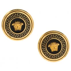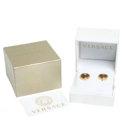 These stud earrings from Versace are designed with minimalist aesthetics. This sophisticated style features the iconic Medusa medallion studs in gold-tone metal and black enamel detailing. Wear it your formal attires and with similar tone long necklace.