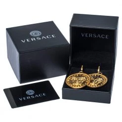 These drop earrings from Versace exude an alluring appeal and are absolutely eye-catching! They have been crafted from gold-tone metal and designed with the signature Medusa motif detailed rings. They are easy to clip-on and will prove to be an amazing buy!