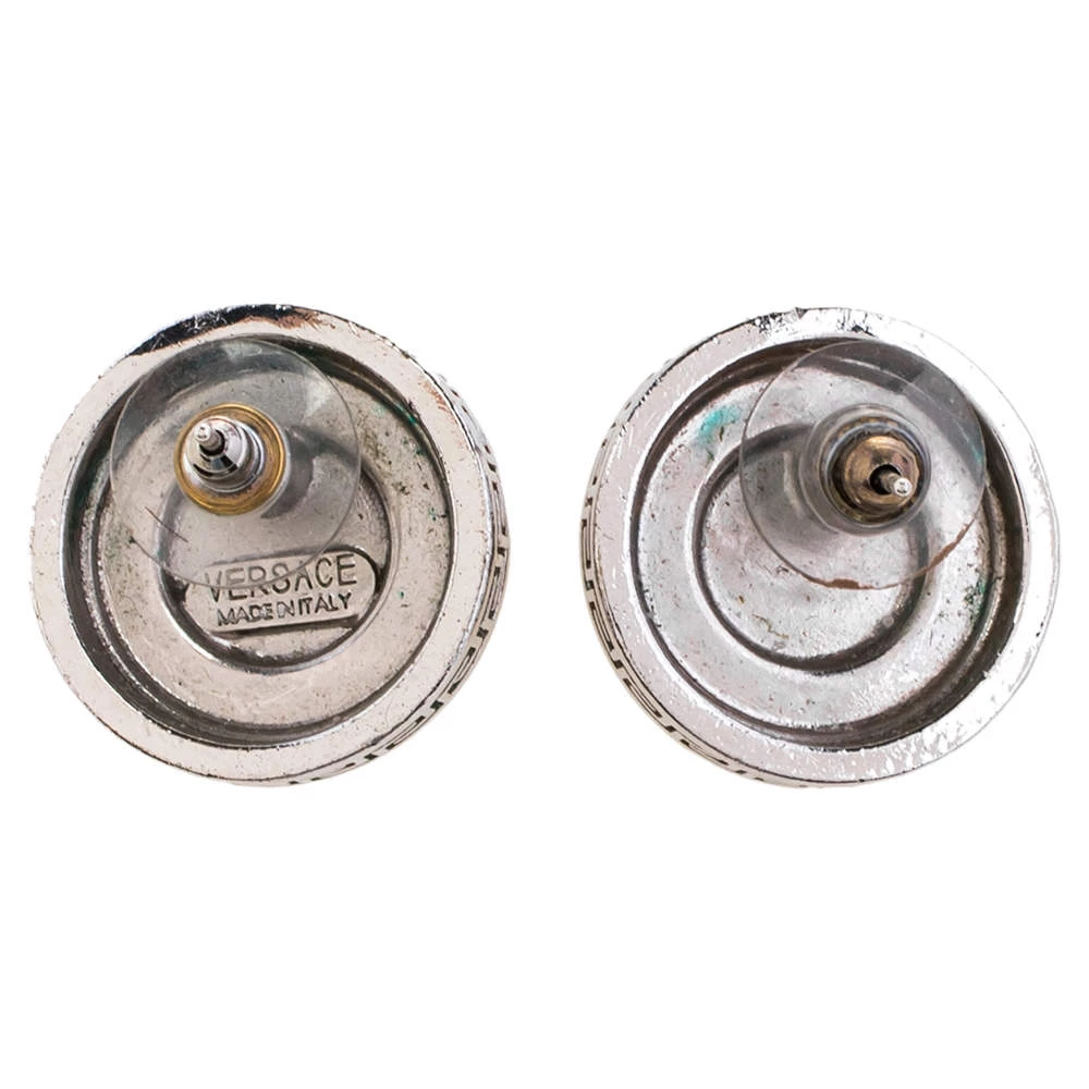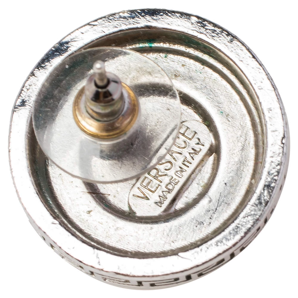 These stud earrings from Versace are designed with minimalist aesthetics. This sophisticated style features the iconic Medusa medallion studs in silver-tone metal and crystal embellishments. Wear it with a complementing necklace for a put-together look.