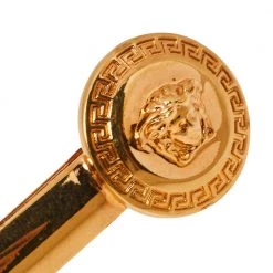 Versace reworks its signature Medusa head in coin motif to create this hair clip. It’s made from gold-tone metal with a Greek meander pattern engraved outside the plaque, then set on a curved slide frame. Let it bring a note of exuberant Italian glamour to weekend ensembles.