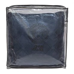 A soft, well-made cushion by Versace to add the luxe element in your home. The cushion in navy blue has a square shape and the signature Medusa detail spread all over.