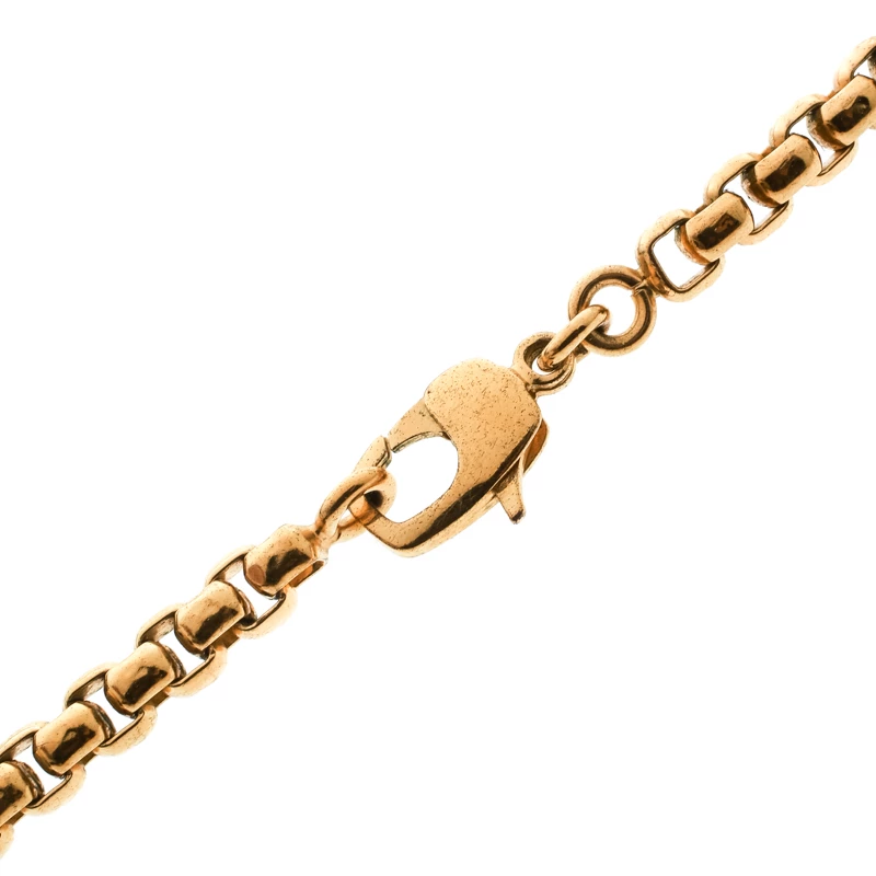 Accessorize your bold looks with this engaging and striking necklace from Versace. The dapper piece is crafted from gold tone metal and features the brand’s signature Medusa pendant in a square shape and a small rectangle-shaped Versace-engraved pendant. It comes with a chunky interlocking chain and a lobster clasp. Wear this exquisite creation with everything, from leather pants to cool t-shirts and suits.