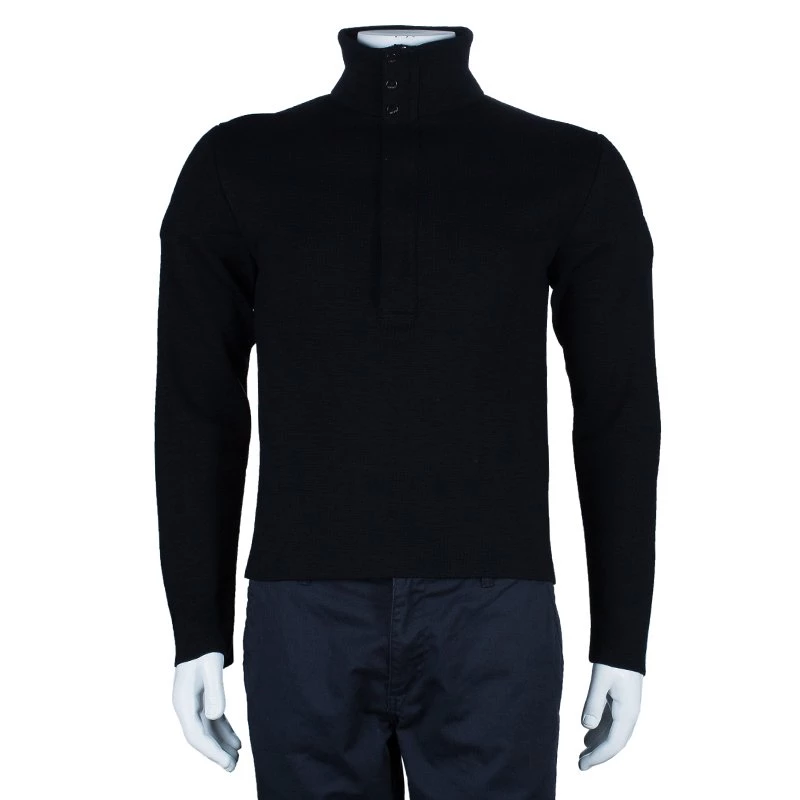Woven in a turtle neck with three buttons, this pullover from the house of Versace, looks simply versatile and masculine. Crafted from wool leather and elastane blend, it features full sleeves and a turtle neck. Complement it with casual or formal wear. It is a must-have addition to your daily wardrobe for an effortless styling.