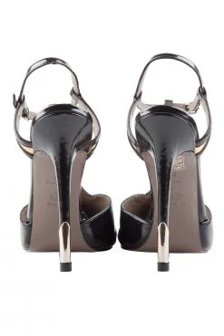 These patent leather sandals have an enticing detail on the vamps in the dual tones of black and gold. These T strap sandals feature a 13cm heel and comfortable leather insole. Who would want to miss this Versace piece? Add this to your collection now!