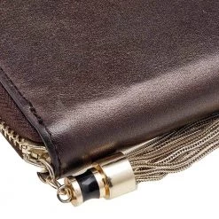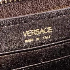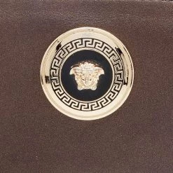 Keep your everyday belongings safe in this wallet from the House of Versace. It is designed using metallic-brown leather, with a Medusa motif perched on the front. It features a well organized fabric-leather interior and gold-tone hardware. Add this stunning accessory to your collection now.