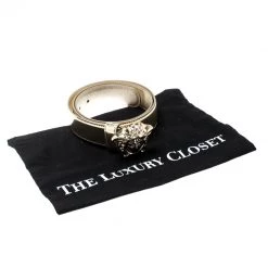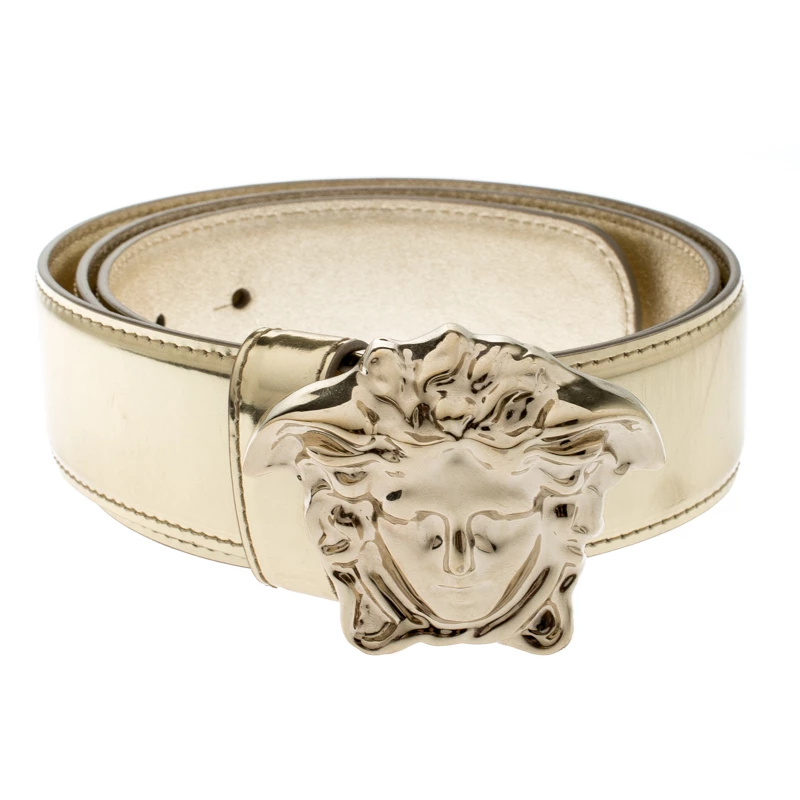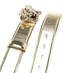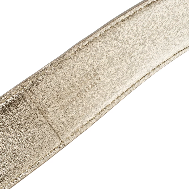Accessorise right with this belt from Versace. It is made from metallic gold leather with and it has a sleek design with a gold-tone metal Medusa buckle and a single loop.