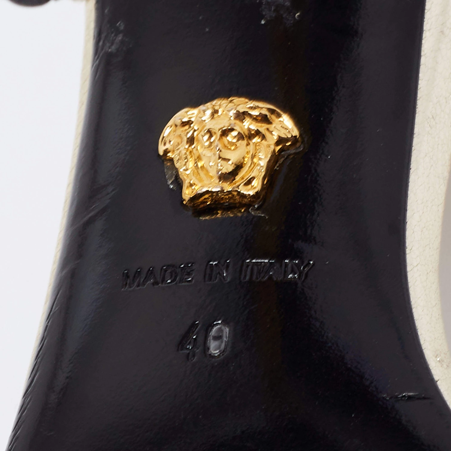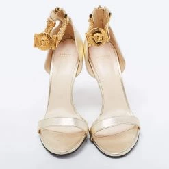 This pair of sandals by Versace delivers sophistication. The shoes come made from leather in a classy shade of metallic gold and are designed with open toes and 12 cm heels.
