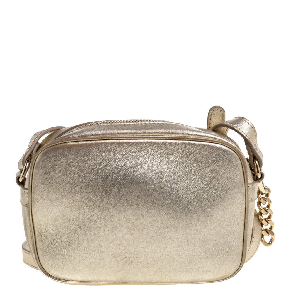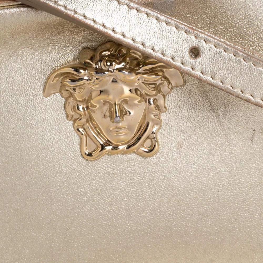 Designed to last, this beautiful bag from Versace is a prized buy. Comfortable and easy to carry, this leather creation comes in metallic gold with the Medusa emblem on the front. It has a shoulder strap and an interior lined with satin to keep your essentials organized and safe.